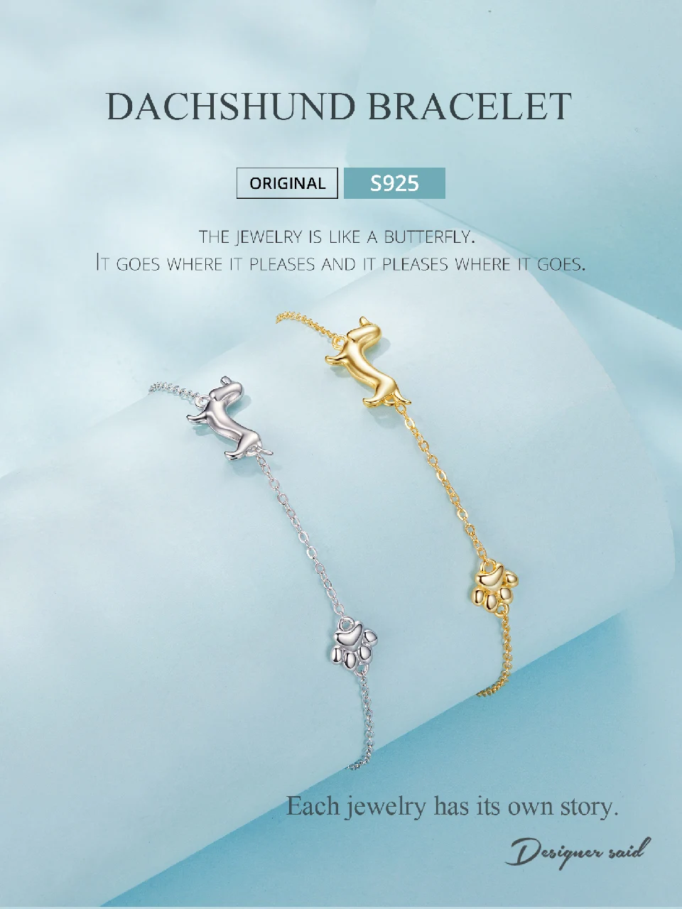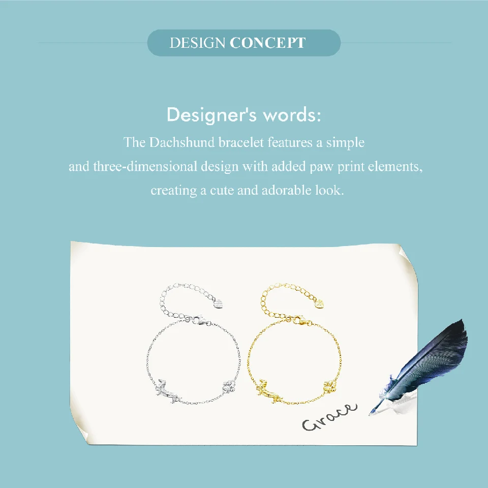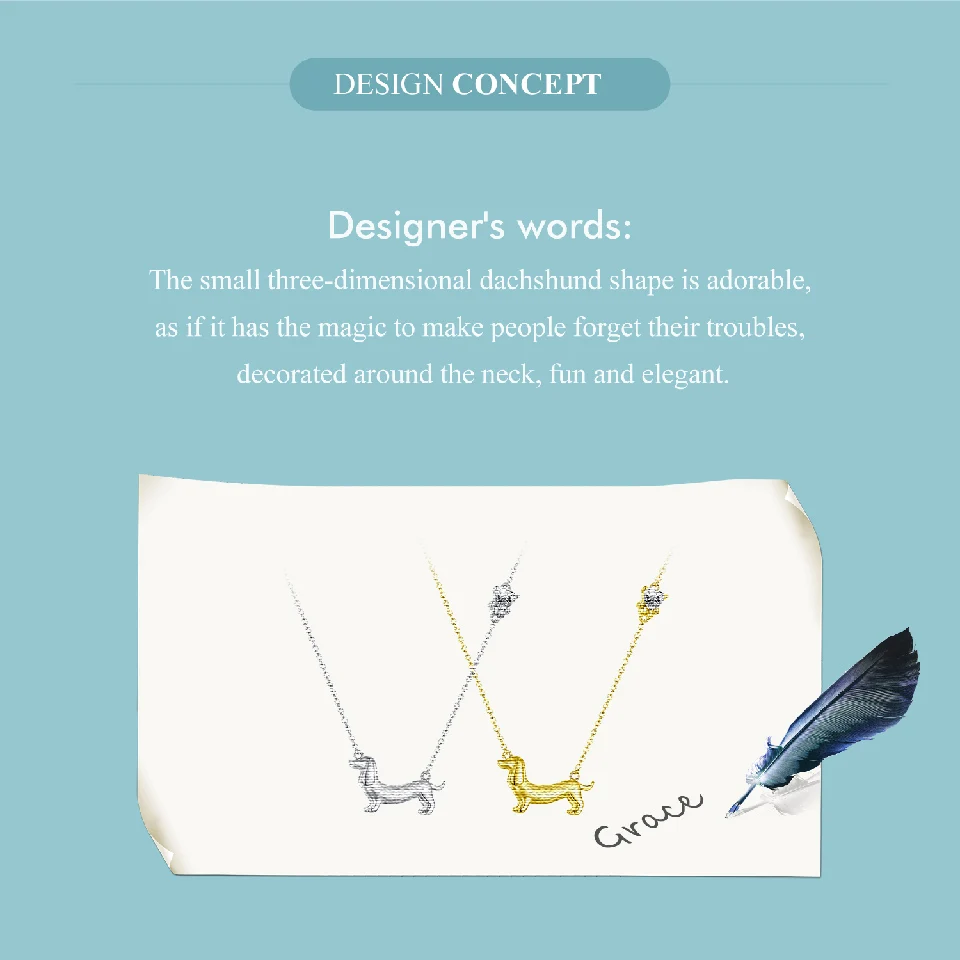 WOSTU Solid 925 Silver Dachshund Pendant Necklace 18K Gold Pet Paw Chain Link Dog Charm bracelets Earrings Rings For Pet Lover