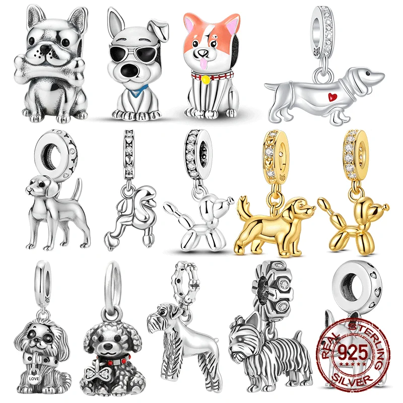 925 Sterling Silver Beagle Dachshund Yorkie ShihTzu Golden Retriever Charms Pendant Fit Original Bracelet Necklace DIY Jewelry