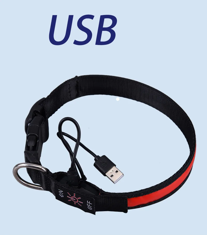 LED Dog Collar Adjustable USB Rechargeable 3 Modes Waterproof Nighttime Safety Reflective Leather Light-up Suitable For Pets